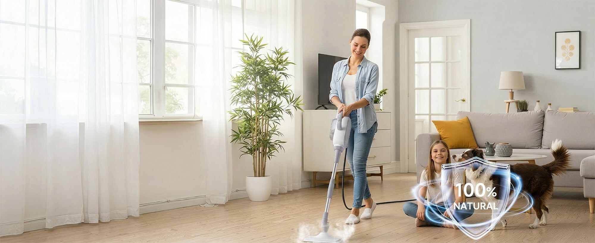 • Reinigung nur mit heißem Dampf, ganz ohne Chemikalien