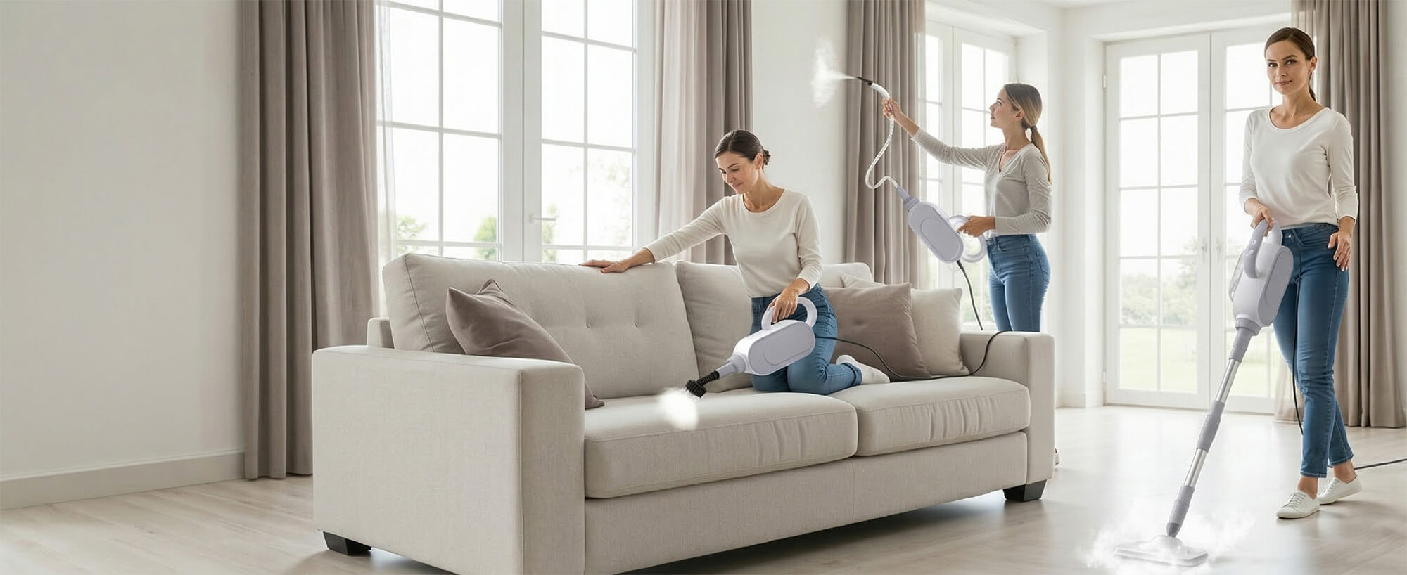 Dampfglätten und hygienische Reinigung von Kleidung und Polstern